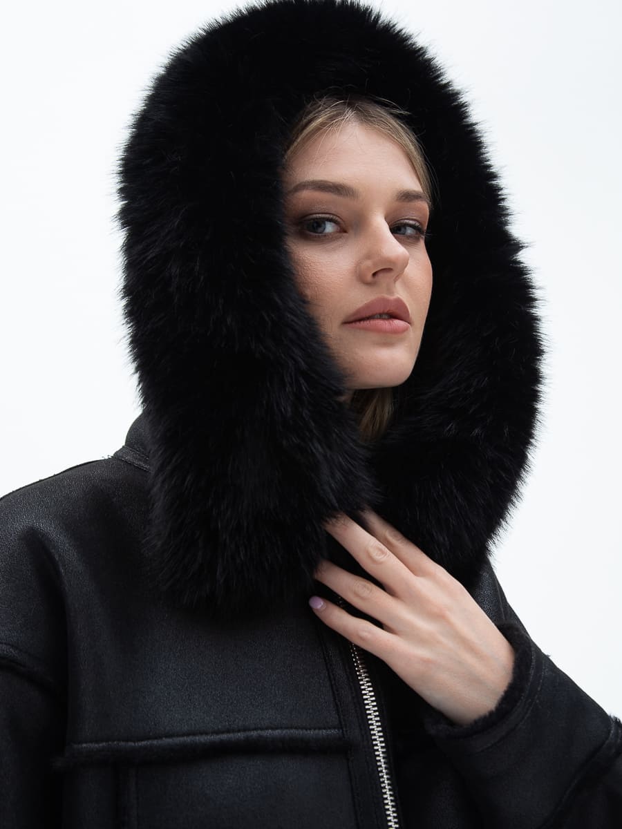 Вид ворота - капюшон, отделка эко мех