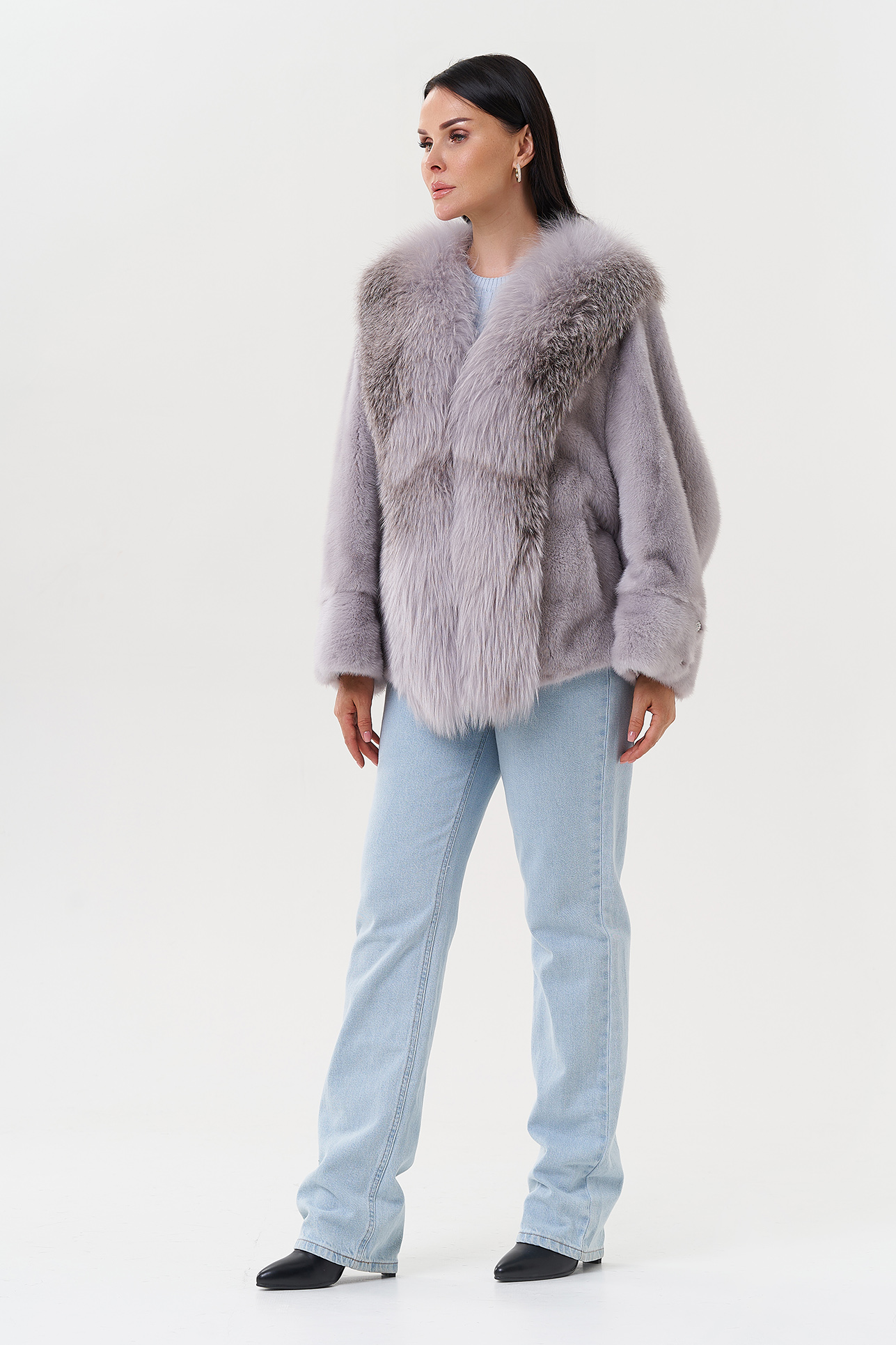 Тип ворота - V - образный воротник, отделка чернобурка