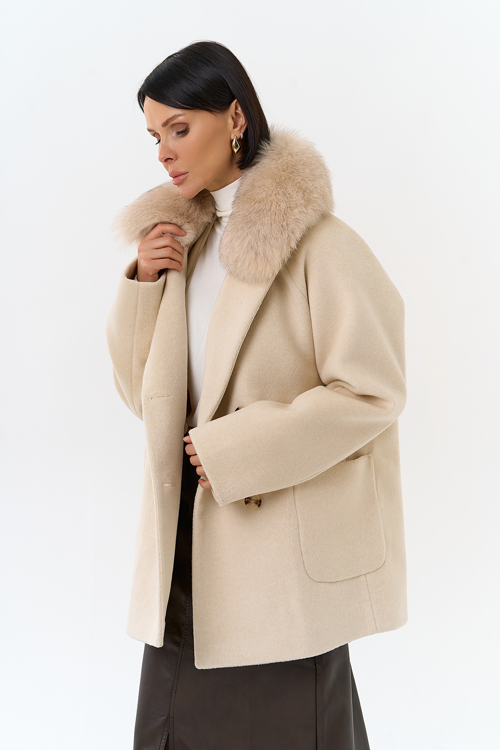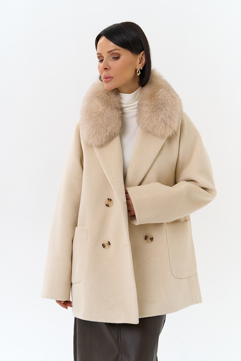 Крой воротника - английский воротник, отделка песец